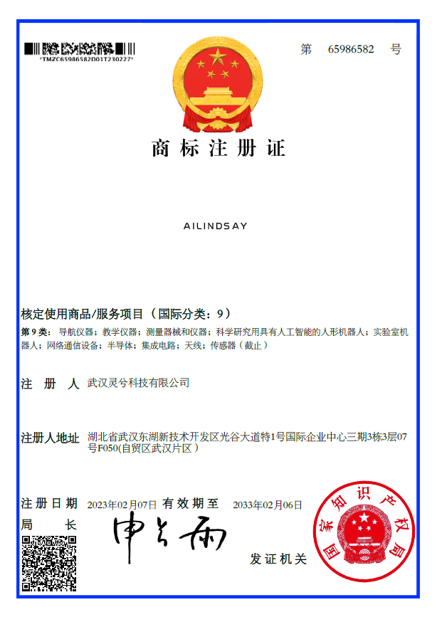 自公司成立以来,灵兮科技十分注重自身品牌形象的建立,在持续深耕人工智能行业的同时,也陆续收获了客户的认可。公司分别注册了中文商标“灵兮”以及英文商标“AILINDSAY”,其中“灵兮”二字正是公司名称简称,表明赋灵人工智能,突出了企业宗旨是持续深耕人工智能行业;而英文商标"AILINDSAY"中的AI首字母已经表明身处人工智能行业,LINDSAY是灵兮的英译。中英文商标的获取,表明了灵兮科技持续走AI人工智能路线的决心,将持续的服务好广大用户朋友。